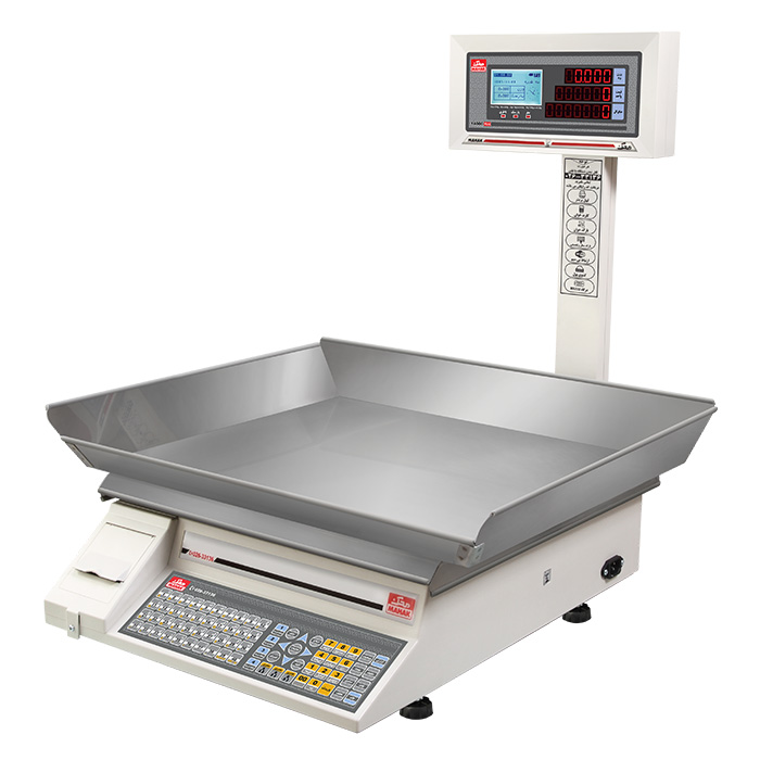| نوع نمایشگر | LED سه ردیفه با قابلیت نمایش: – ردیف اول: وزن – ردیف دوم: 6 رقم قیمت واحد – ردیف سوم: 7 رقم قیمت کل |