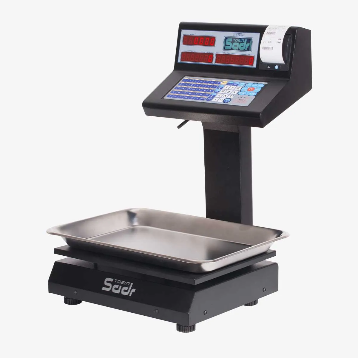 ترازوی تی‌پلاس توزین صدر، دستگاهی دقیق و مقاوم است که برای فروشگاه‌ها و صنوفی مانند میوه‌فروشی، سبزی‌فروشی و مرغ‌فروشی طراحی شده است. این ترازو ظرفیت وزنی تا حدود 40 تا 60 کیلوگرم دارد و دقت آن بین 2 تا 10 گرم است. مجهز به نمایشگر دو طرفه برای وزن، قیمت واحد و قیمت کل، حافظه داخلی برای ذخیره کالاها و امکان اتصال به بارکدخوان و سیستم‌های فروشگاهی است. بدنه و سینی آن از جنس مقاوم و ضدزنگ ساخته شده تا در محیط‌های مرطوب و شلوغ دوام بیاورد. همچنین قابلیت چاپ بارکد و استفاده با باتری در صورت قطع برق از دیگر ویژگی‌های کاربردی آن است. این ترازو انتخاب مناسبی برای کسب‌وکارهایی است که نیاز به سرعت، دقت و قابلیت‌های پیشرفته در وزن‌کشی و فروش دارند.